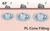 Cat. Ref. : A) DCF - 1x10 W PL- Cone No.0, B) DCF - 1x13 W PL- Cone No.1